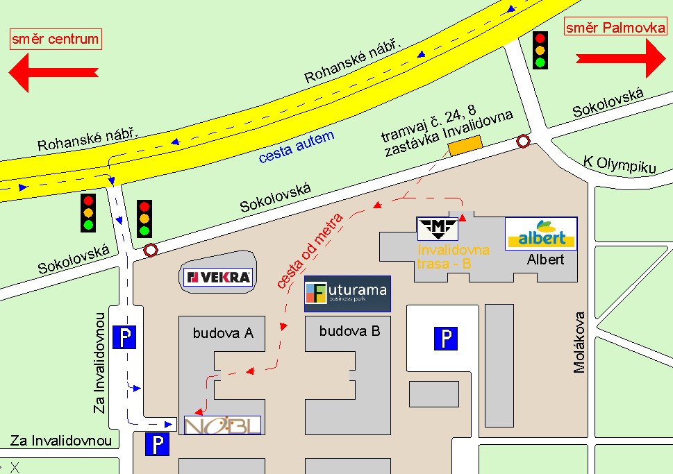 - trasa B, parkování přímo pod objektem na vyhrazených místech. Naše vzorkovna se nachází v levém přízemí pravého křídla budovy A. Těšíme se na Vaši návštěvu v našem novém centru kancelářského nábytku, žídlí, křesel, stolů a též bytových doplňků a bytového nábytku jako jsou komody, skříně, dětské pokoje a další nábytek...